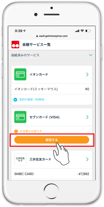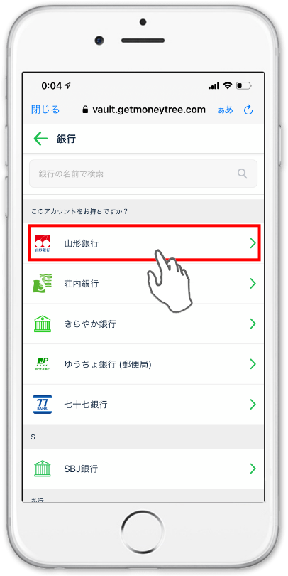 アプリで残高・取引明細を照会する金融機関を以下の手順で追加します。
