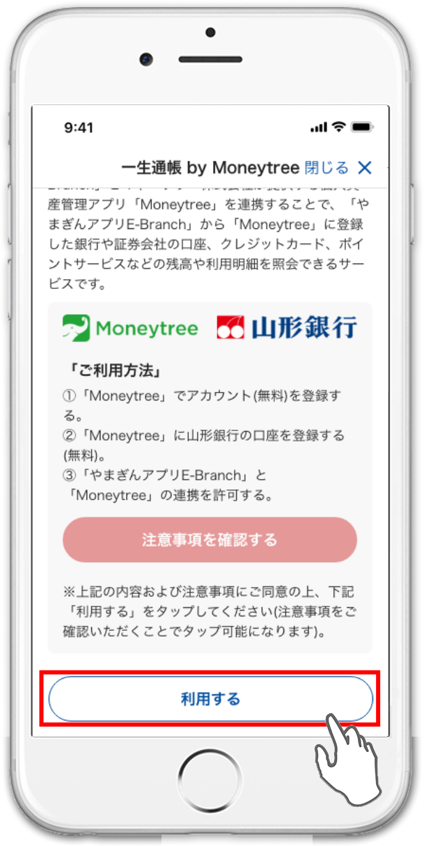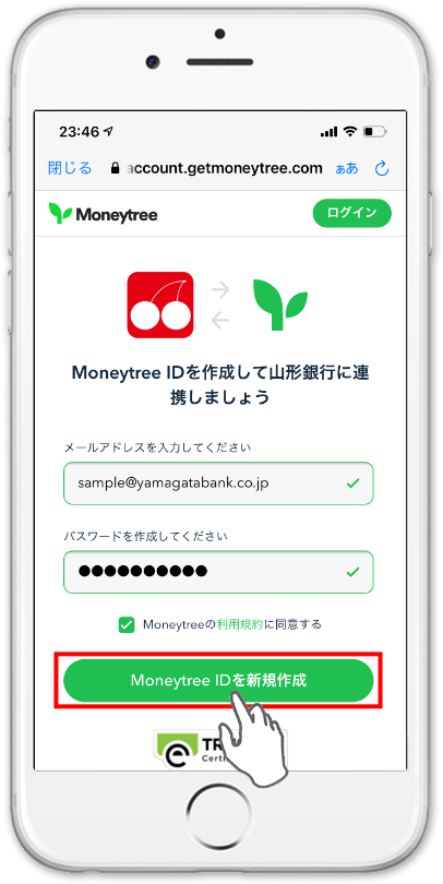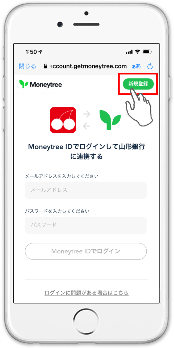 初めて本機能を利用する場合、以下の手順でMoneytreeアカウントを新規登録する必要があります。