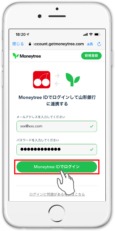 - Moneytreeログイン画面下部「ログインに問題がある場合はこちら」をタップします。