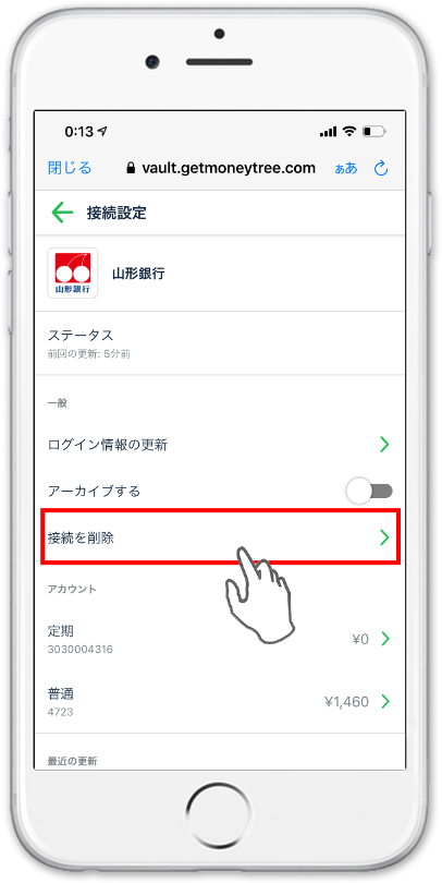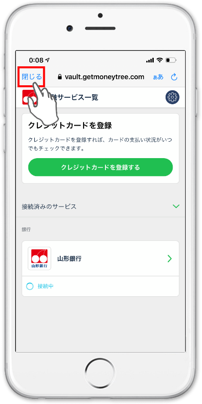 アプリで残高・取引明細を照会する金融機関を以下の手順で追加します。