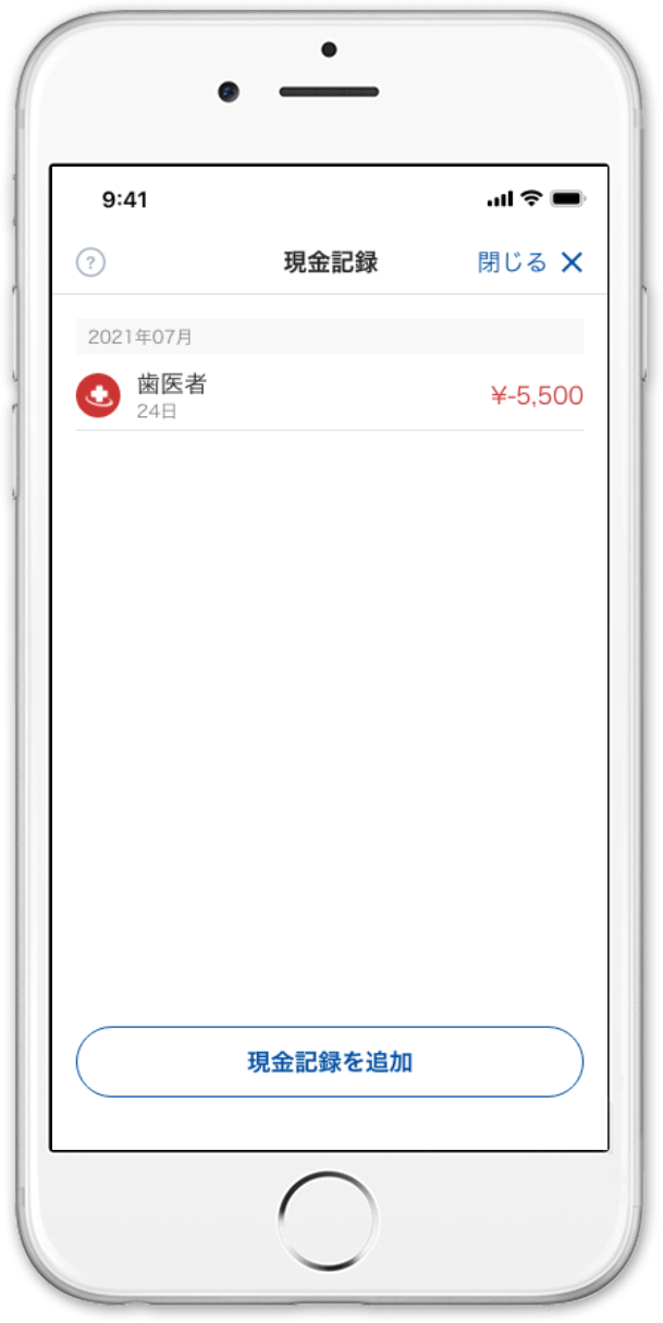 - 「現金記録を追加」をタップすると現金記録登録画面に遷移します。